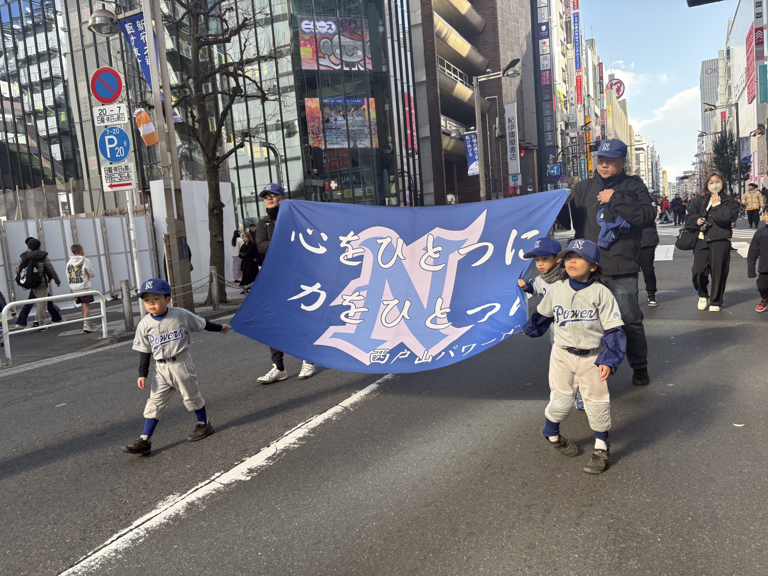 新春パレードでは西戸山パワーズが代表として開会式の挨拶をしました。高学年のキャプテンが元気にかっこよく挨拶をしてくれました。